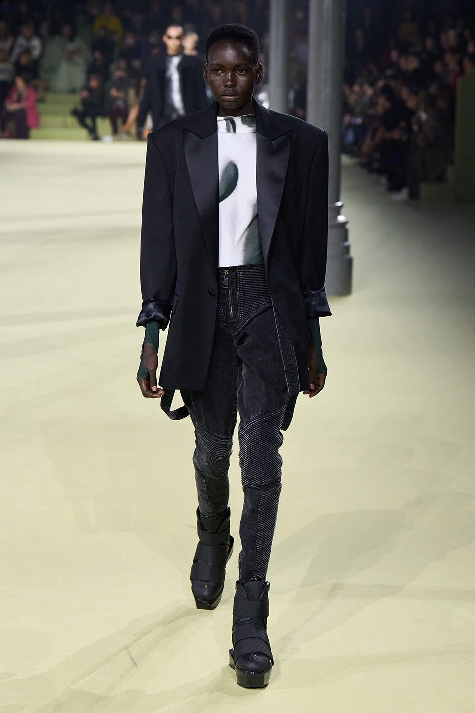 这次的T台上呈现了如此多的浅色——白色,杏色,浅粉色,柔和的丹宁色,这些色彩在本季BALMAIN的T台上尤为突出。在BALMAIN的世界里,这些色彩并非甜蜜与脆弱的基调,相反,它们提醒着我们真相和透明性永远伴随着一种特殊的力量。