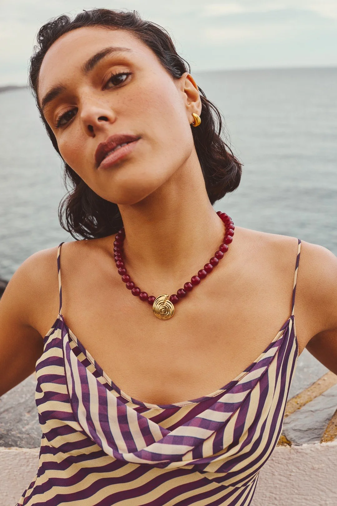 Missoma全新旋律系列-石榴红天然水晶串珠海螺项链