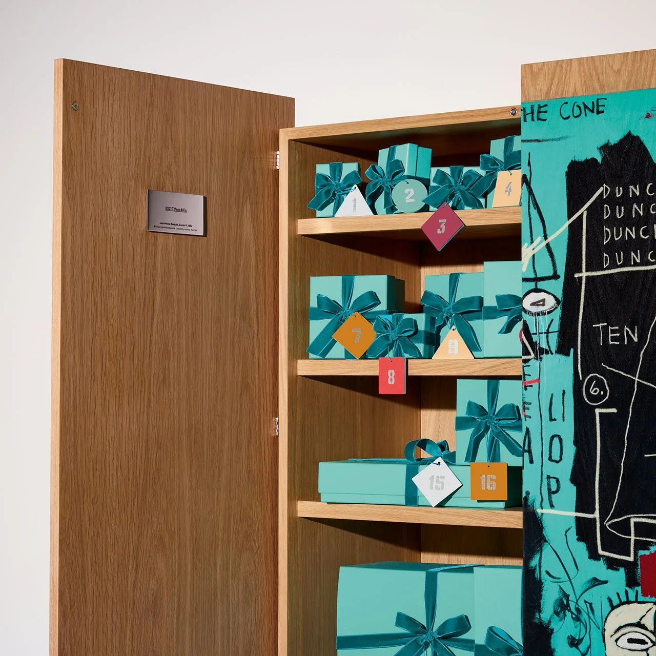 而蒂芙尼此次的节日倒数日历亦匠心独具,选用四英尺高的白橡木作为这幅杰作的画布,盎然呈现节日倒数日历的奇趣门扉,向热衷于使用非传统媒介的巴斯基亚精彩致意。